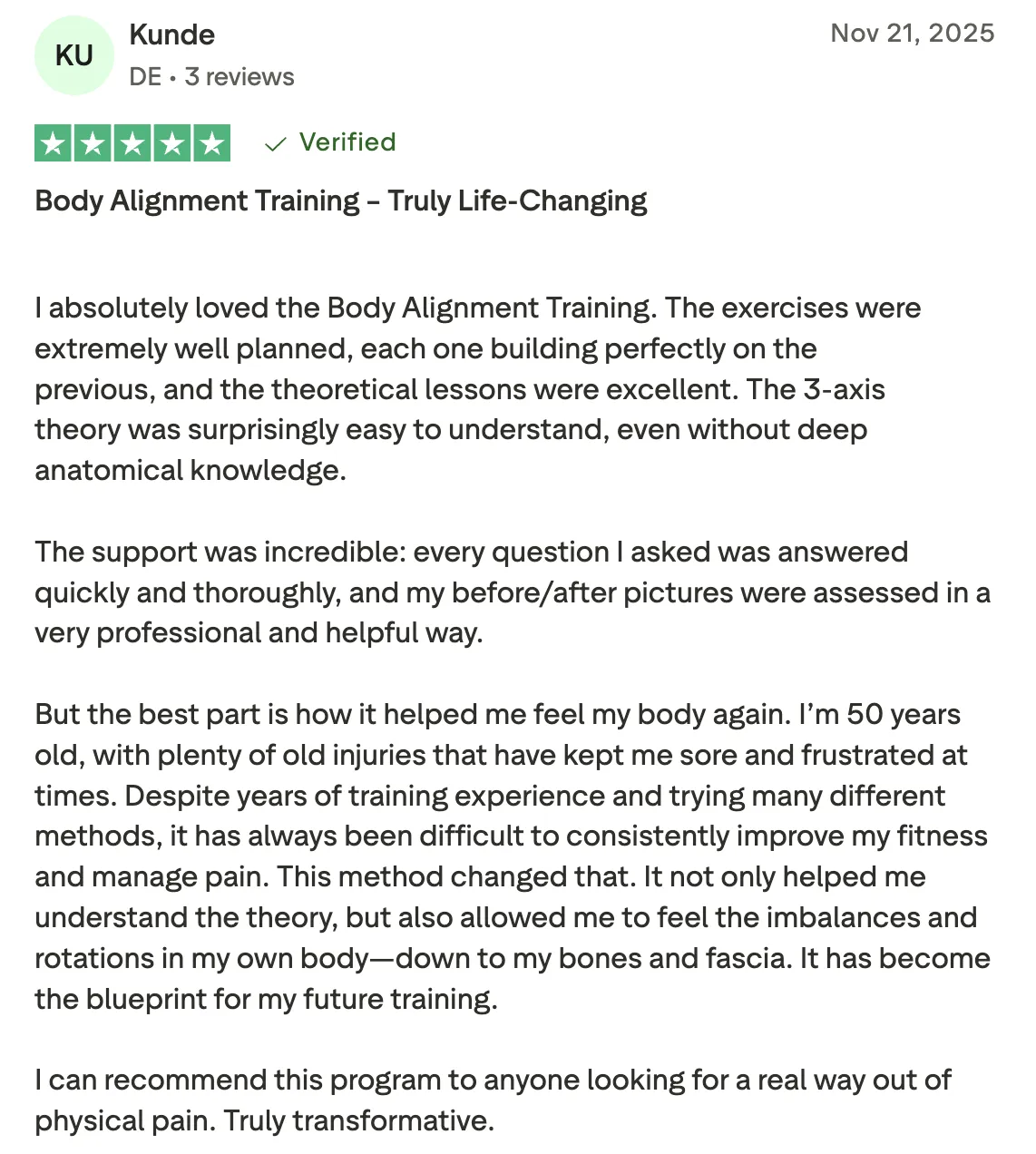 After years of lifting with poor posture and constant back pain, this course finally helped me understand what was off. I’m now training pain-free and feeling more stable than ever.
